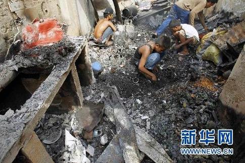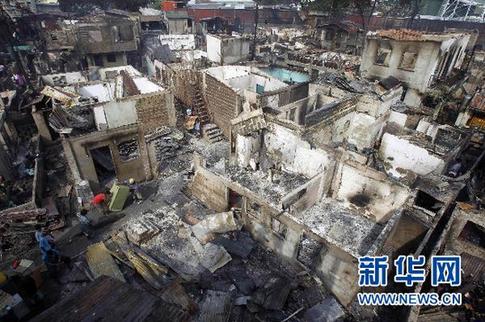 12月24日,在菲律賓首都馬尼拉以南的庫龐村,當地居民在被燒毀的房屋廢墟里挑選有用的物品。