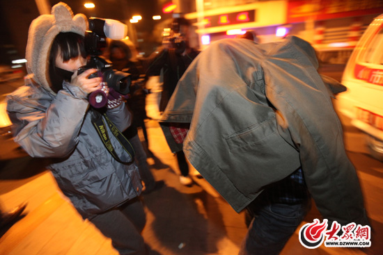 醉酒司機(jī)接受血液檢測,下車后蒙頭蓋面,出手打女記者(曹亮 攝)