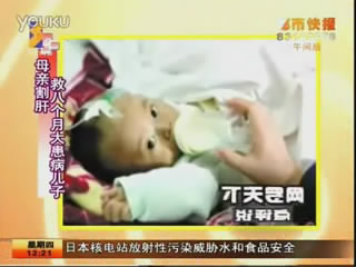 為了孩子每個母親都會付出一切,小緯患有先天性膽道閉鎖,長到8個月還只有五六公斤重。如果不進行移植手術,小緯很可能只能存活幾個月的時間。母親毅然的為孩子捐140克肝臟,目前母子恢復情況良好,母親已出院兒子下周出院。
