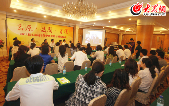 山東援藏干部家屬接過由大眾報業集團贈送的中秋大禮包。
