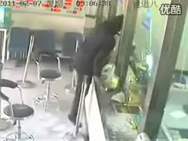 ·笨匪舉錘砸銀行玻璃被擒