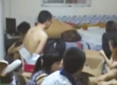 賣淫團伙成員在地下室被警方控制。視頻截圖