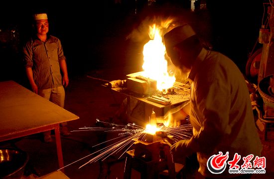 保安腰刀是保安族傳統的手工藝品,包含了數百年傳承的精湛技藝和悠久濃郁的歷史文化。這就是保安族腰刀的傳承人馬維雄。馬維雄全家四代打刀,現在,隨著科技的發展,一年前,馬維雄父子創辦了網站,讓更多的人了解保安刀,而且也帶動了保安腰刀的銷量。保安腰刀中最具有代表性的是折花刀,制作工藝復雜,刀身剛柔相濟,不易折斷,刀刃鋒利無比。這就是馬維雄打制的腰刀。一把普通的折花刀在打制的時候要用40片鋼和40片鐵,經過數千次反復鍛打之后才能達到鋼與鐵的水乳交融,才能達到制作折花刀的標準。現在,氣壓錘已經被應用到打造過程中。相對于純手工的捶打,更精密,更省時。但就是這樣一把折花刀,制作起來也要花上二十天左右的時間。經過反復打磨和折花,折花刀上就出現了青白相間的流線型花紋。馬維雄制作的腰刀賣了上百把,最低的幾百元,最高的則要上萬元。保安腰刀鍛制工藝已經列入國家非物質遺產。在保安族,還有一項傳統的體育項目——奪腰刀。腰刀文化已經深深地融入到保安族的歷史。