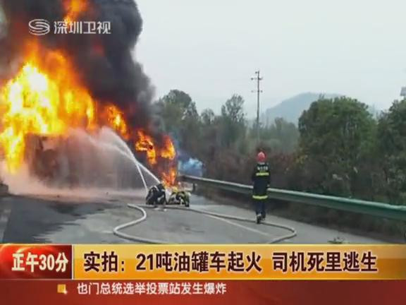 油罐車側翻起火 司機逃生 2012-02-22 08:35:35