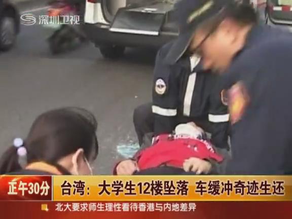 臺灣嘉義市一名大學男生從住處頂樓12樓墜落,砸中樓下的一輛轎車,男生奇跡生還。