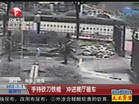 前兩天,浙江舟山一家汽車銷售公司的展廳突然闖進了兩名手持鐵棍、砍刀的蒙面男子,兩人對著展廳內的樣車又砸又砍,使三輛新車損毀嚴重。