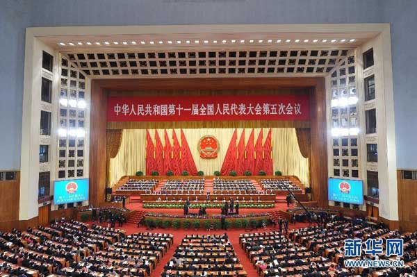 3月14日,第十一屆全國人民代表大會第五次會議在北京人民大會堂舉行閉幕會。 新華社記者 王曄 攝
