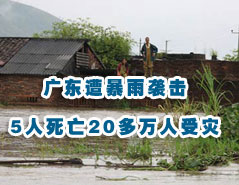 廣東遭暴雨襲擊 5人...