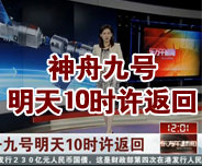 神舟九號明天10時許返回