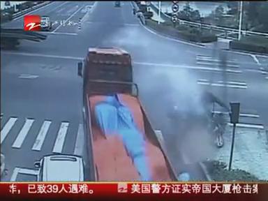 監控視頻顯示,在一隧道口前,一輛重型槽罐車將前面的車輛撞翻,強大的慣性還把一輛掛車推行了足足18米。