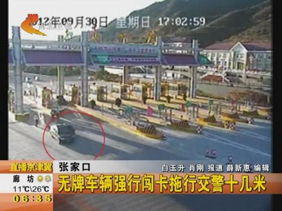 無牌車輛強(qiáng)行闖卡拖行交警 2012-10-02 09:35:07