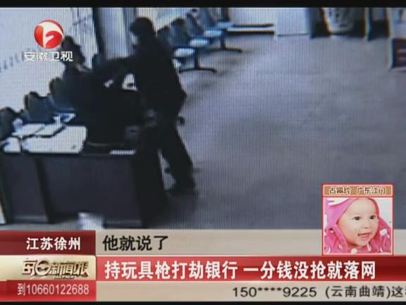 近日,在江蘇徐州的一家信用社內,一名男子手持玩具槍打劫銀行,在與保安的對峙中,男子心慌后逃跑,一分錢沒搶就被警方抓獲。