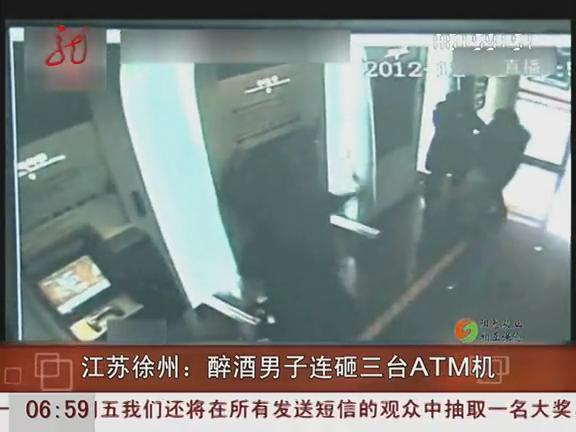 近日,在江蘇徐州,一名醉酒男子因為卡被吞了,取不出錢,惱怒之下,便連砸三臺ATM機。監控記錄下了這一幕。