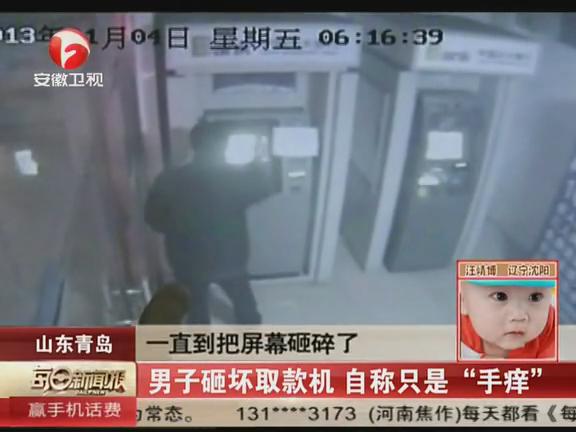 監控拍下男子拿磚砸取款機 稱只是手癢