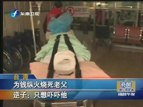 臺灣新竹發生一起火災,屋主等不到救援而葬身火窟,案發過后,失蹤的死者長子后來坦陳縱火,理由只是父母沒有依承諾幫他存錢,憤而縱火。得知父親被燒死,男子十分懊悔,稱只想嚇嚇他。