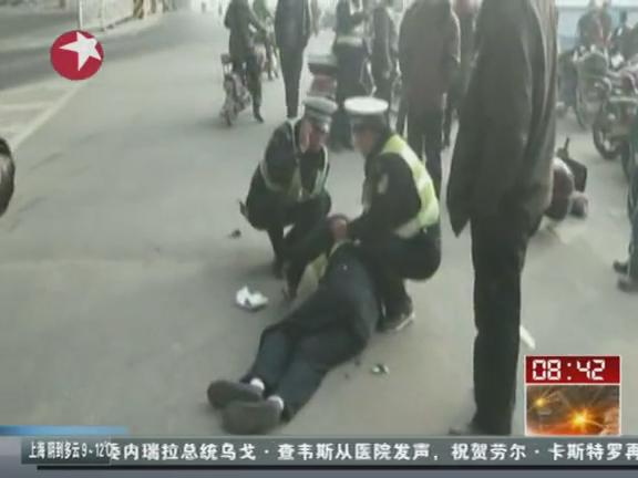 男子無證駕摩托闖關撞飛交警 2013-02-28 08:25:04