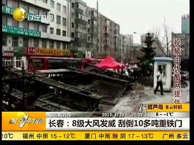 長春:8級大風發威 刮倒10多噸重鐵門