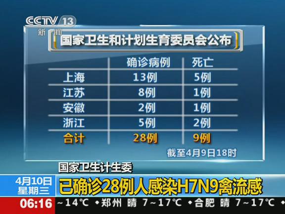 全國目前共報告28例確診H7N9病例 死亡9人