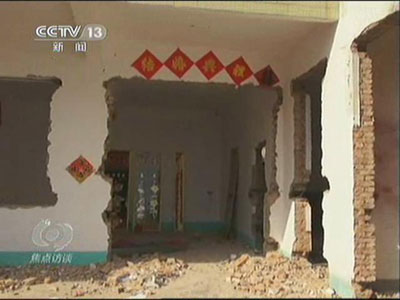 就在瓦礫前方不遠處的田野邊,記者看到已經建起了幾棟新樓。村民說,那就是“新村”。可奇怪的是,新村蓋起來了,有不少村民卻依然住在拆掉一半的廢墟里。
