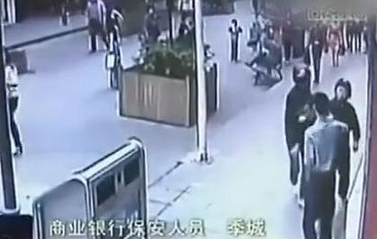 實(shí)拍男子當(dāng)街搶奪銀行押鈔員配槍