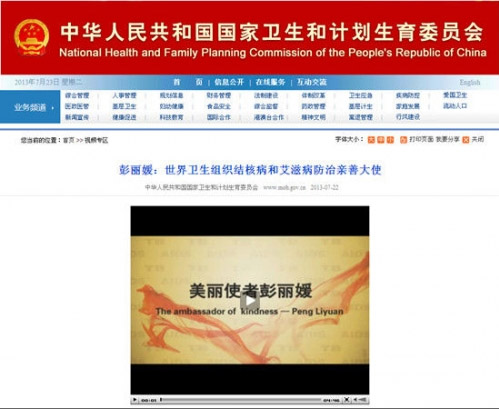原標(biāo)題:衛(wèi)計(jì)委官網(wǎng)刊登短片“美麗使者彭麗媛”