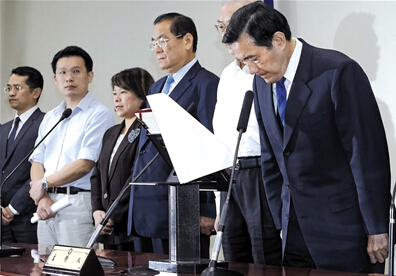 11月29日,臺北市,馬英九在敗選后召開的記者會上鞠躬致歉。