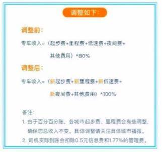 8月22日,濟南滴滴專車司機端計費方式開始調整。原來滴滴專車、快車司機的收入模式是:乘客每單支付的車費中,平臺抽取20%提成,外加每單0.5元的保險費用,剩余部分歸司機所有。計費調整后,平臺不再執(zhí)行“抽成”模式,而是司機和乘客分開計價,直接顯示最后運價。
