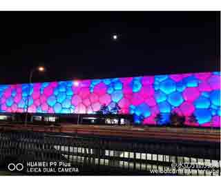 ▲秦凱求婚何姿成功后,日前,國家游泳中心水立方也為他們亮燈祝福,還特意拼出“QKHZ”和“I love U”的字樣(圖),場面十分浪漫。