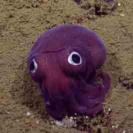 ▲近日,美國一艘研究船在加州海岸發現一只長相非常“卡通”的烏賊,圖:一雙出奇大的眼睛,酷似人造小玩具,而實際上它是在900米深的海域發現的一只活生生的烏賊。(參考消息)
