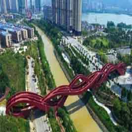 ▲近日,躋身CNN“世界最性感建筑”排行榜的長沙梅溪湖中國結步行橋全面建成(圖),即將對市民開放。這座步行景觀橋由直線形“散步道”和拱形“登山道”交叉組成。網(wǎng)友:走著走著就丟了……(中國日報)