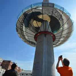 ▲“樓翹翹”:一個月前,英國海濱度假城市布賴頓“樹立”起全球最高的移動觀景臺。上周,這座高達162米的觀景臺被人包下舉辦私人派對,但當賓客全沖去酒吧喝酒時,卻導致觀景臺一側重力過大,失去平衡停止運轉。約200名賓客因此受困約兩小時。圖:觀景臺外型宛如一個甜甜圈掛在木棍上,可從高空俯瞰綿延42公里的海岸線景觀。(中新網(wǎng))