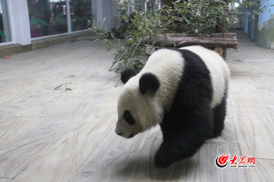 大熊貓適應了濟南新家。
