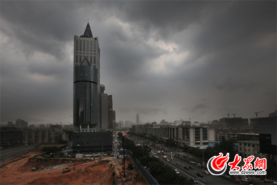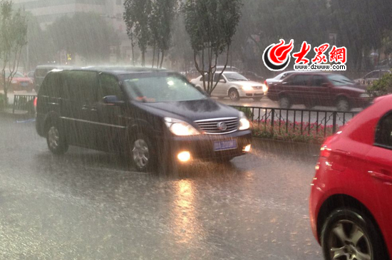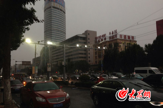 下午6點,濟南突降大雨,天色瞬間暗了下來。見習記者 劉明明 攝