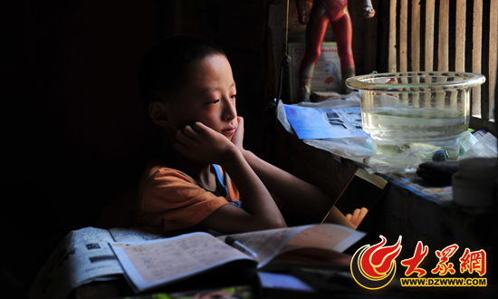 張強的家是一棟破舊的土坯房,“進來坐,老師,進來坐。”張強站在門口,熱情的出門招呼。一米四五的個子,張強和同齡的孩子相比,要瘦小不少。站在一旁的奶奶也已經73歲,一頭白發,“孩子出生就沒了媽,當時體重只有2斤7兩,他爸爸在濟南打工,從小就跟著我,吃不好,長得矮。”張強聽著,偷偷抹起眼淚。張強的奶奶告訴記者,現在她們祖孫倆每月只靠張強父親寄回的200元生活費勉強度日。