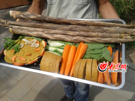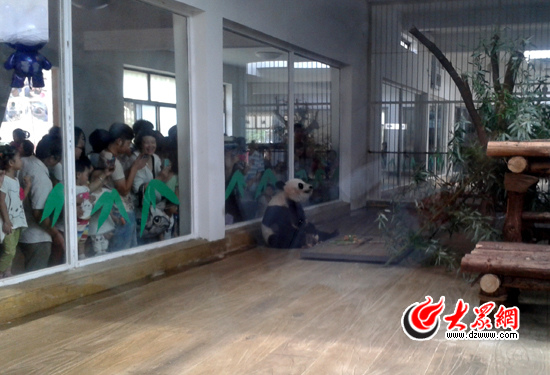 今天是中秋節(jié),為了能讓動物們也能感受到傳統(tǒng)佳節(jié)的氣氛,動物園還為熊貓準備了特別制作的“月餅”。“這是叮叮和咚咚第一次在濟南過中秋,我們用熊貓平時最愛吃的精飼料制成月餅形狀,里面夾上它們最愛吃的蘋果和香蕉等水果,讓叮叮和咚咚也和我們一樣過中秋。”飼養(yǎng)員賀景昭介紹說,動物園不僅為熊貓們準備了“月餅”,還配上了胡蘿卜、竹筍、窩頭等食物。
