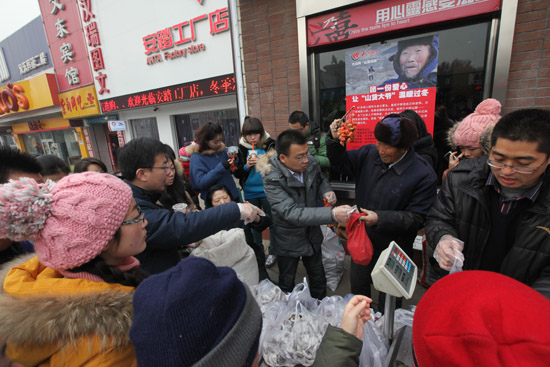 人們的熱情讓今天不再寒冷,很多市民推掉了山貨大爺找來的零錢,