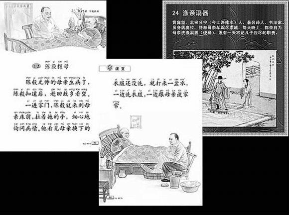 郭初陽(yáng)對(duì)蘇教版小學(xué)語(yǔ)文教材一年級(jí)下冊(cè)第12課《陳毅探母》一文考證后認(rèn)為,該課文“探母”的事實(shí)錯(cuò)誤。郭初陽(yáng)還發(fā)現(xiàn),在元代郭居敬編的《二十四孝》中,可以找到和《陳毅探母》一文類(lèi)似的一則故事———《滌親溺器》。