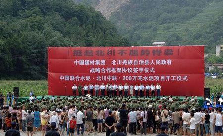 7月12日,北川縣與中國建材集團在擂鼓鎮舉行了中國聯合水泥北川中聯總投資6億元、年產200萬噸水泥項目開工儀式。