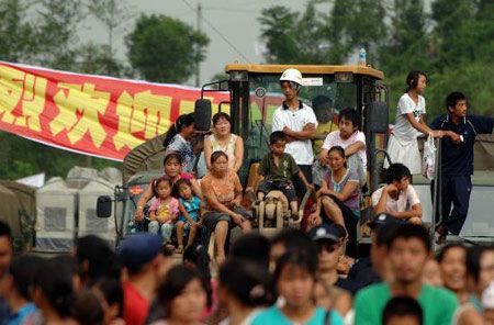 7月12日,北川縣部分受災群眾在開工儀式現場。新華社記者劉潺攝
