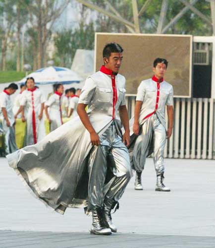 據了解開幕式將長達三個半小時,其中包括50分鐘的表演節目、運動員進場儀式,昨天,記者趁演員們排練間隙出來“放風”,搶拍了幾張演員們休息的照片。