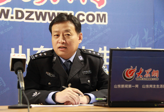 11月9日上午9時,第二期嘉賓濟(jì)南市公安局天橋分局黃臺派出所所長曹鴻華來到大眾網(wǎng),與網(wǎng)友互動。 (大眾網(wǎng)記者 盛堃 攝)