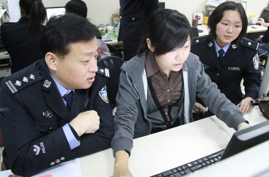 黃臺派出所所長曹鴻華與派出所民警共同在線為網友解答問題。(大眾網記者 盛堃 攝)