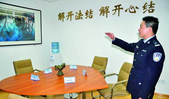 派出所調解室內的桌子是心形的。