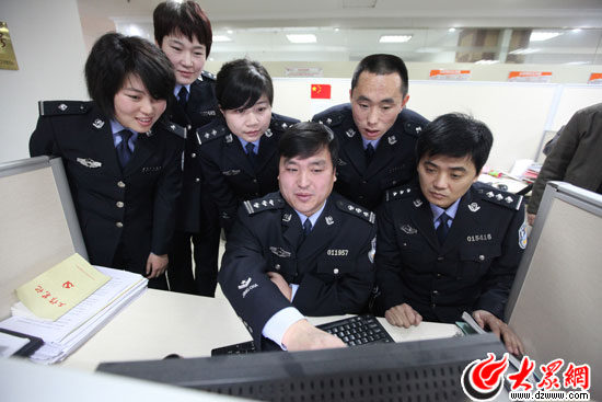 濟南市公安局長清區分局新城派出所所長韓樹銀做客“所長在線”與網友互動交流,并與民警一起回答網友的提問。(曹亮 攝)
