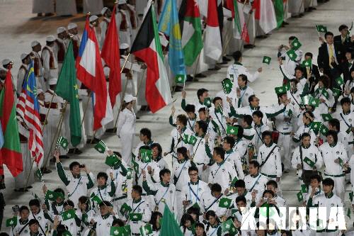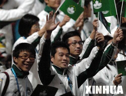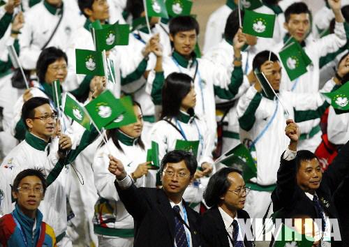12月1日,第15屆亞運會開幕式在卡塔爾首都多哈哈里發體育場隆重舉行。這是中國澳門代表團入場。 新華社記者李岳攝