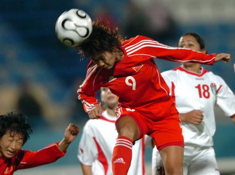 易邊后場面又迅速導入中國隊圍攻對手的局面,剛過1分鐘,韓端接應劉亞莉左路傳球形成頭球吊射,約旦門將移動稍慢,皮球貼立柱飛入網內。第52分鐘,任麗萍前場斷球后沿中路突破贏得任意球,李潔外圍勁射稍稍偏出。在積極拼搶下,約旦隊相繼有球員受傷,這也是中國隊接下來的課題,如何在盡量擴大比分同時避免不必要損耗。第56分鐘,約旦隊薩烏桑領到黃牌。2分鐘后,韓端于禁區前覓到無人盯防的攻門機會,其一腳勁射擊中橫梁彈回。