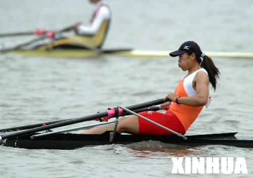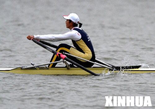 10月14日,山東選手奚愛華在十運會賽艇比賽女子單人雙槳的決賽中獲得亞軍。