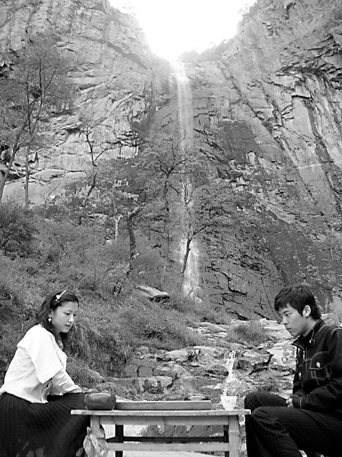 圍甲賽:高山流水棋逢對(duì)手帥哥美女瀑下對(duì)弈