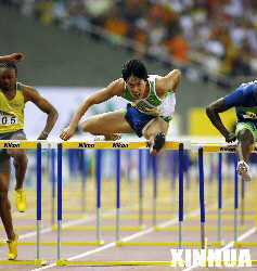 9月23日,中國(guó)選手劉翔(中)在2006上海國(guó)際田徑黃金大獎(jiǎng)賽中,以13秒07的成績(jī)奪得男子110米欄冠軍。 新華社記者凡軍攝(資料圖片)