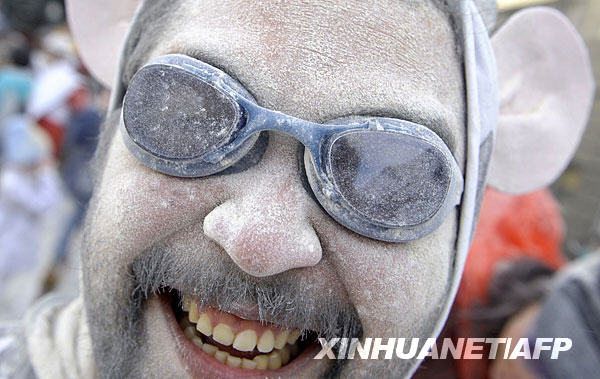 1月24日,人們在西班牙西北部的一座村莊參加狂歡節(jié)中的“面粉大戰(zhàn)”。新華社/法新